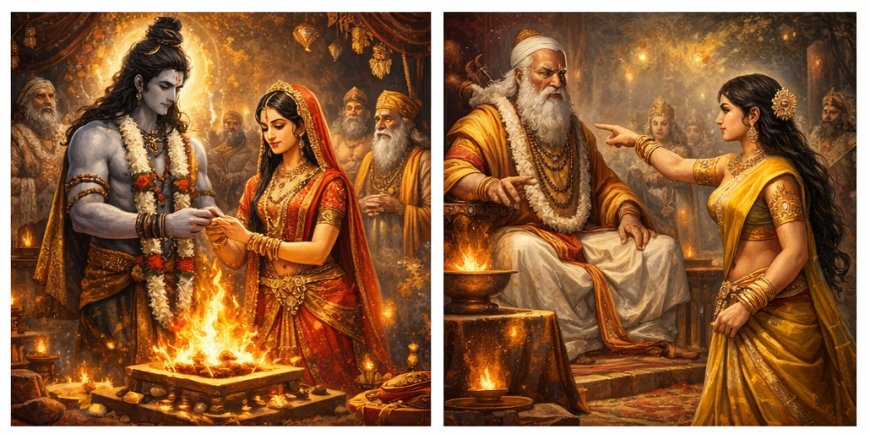 बचपन से ही देवी सती का स्वभाव अजीब था। दूसरी लड़कियों की तरह, उसे श्रंगार या शाही ज़िंदगी की शान-शौकत का कोई शौक नहीं था। जब भी वह शिव का ज़िक्र सुनती, या किसी ऋषि को उनकी महिमा बताते हुए सुनती, तो उसका दिल गहरी भावनाओं से भर जाता। श्मशान में रहने वाले शिव हिरण की खाल पहनते थे, भस्म लगाते थे और गले में सांप रखते थे। आम लड़कियों के लिए यह डर की बात होती। लेकिन सती के लिए यही शिव उसके दिल में बस गए थे। धीरे-धीरे यह आकर्षण भक्ति में और भक्ति प्यार में बदल गई। अब सती का एकमात्र लक्ष्य शिव को पति के रूप में पाना था। लेकिन यह रास्ता आसान नहीं था। जब दक्ष को सती की इच्छा का पता चला, तो वे गुस्सा हो गए। उनकी नज़र में शिव बस जंगल में भटकने वाले एक योगी थे। उन्होंने सती को एक काबिल, शाही और इज्ज़तदार पति चुनने के लिए मनाने की कोशिश की। लेकिन सती पहले ही अपना मन बना चुकी थीं।